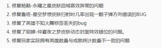 正式服五个BUG修复:不知火舞的SNK标签终于修正,并非是网传的取消了。而且在这里说一下八神庵,策划之前回复称,之后不打算推出SNK英雄了,所以八神庵算是彻底尘封了。