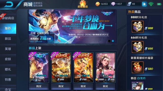 王者荣耀本次碎片商店虽然有更新,但只是新增了新英雄和288新皮肤。而夺宝商城却有实实在在的更新,点券商城更新了成吉思汗和孙悟空,钻石商城更新了太乙真人、典韦、甄姬。更多王者荣耀最新资讯,请关注玉面小白狐!