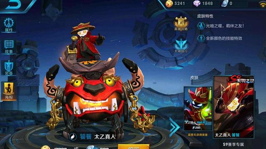 太乙真人的奖励皮肤上也有汉子,这个字其实是在炼丹炉的上面,头顶上有一个食物的:食。这个也是很难看到的地方。