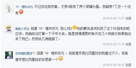 楼主总结的规律并不是适用所有人的,有的玩家贵族7都没有一个荣耀水晶,贵族6拥有2个荣耀水晶几率是非常小的,最后留住解释,自己是心悦2,其他的TX游戏坑了自己,王者荣耀算是补偿了自己,积分夺宝也没打算一下子中大奖,就是想慢慢积累,每天花几十就行了,结果却出人意料的抽中了荣耀水晶,天美的王者荣耀跟其他游戏不同的是,皮肤拥有一定的属性加成,而且每一次放出新皮肤都更加的好看,让买过之前皮肤的玩家心痒,而且很多英雄是很难获得的,为了获得武则天花费几千的都有。