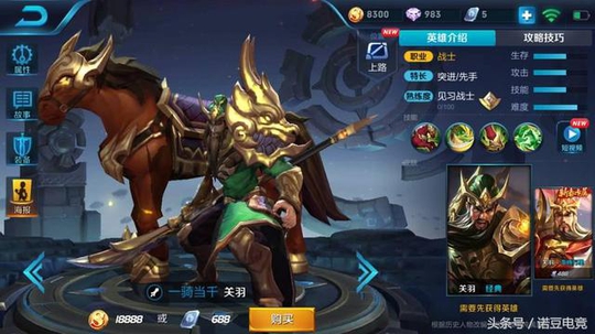 关羽这个英雄就是神出鬼没,当他出现在视野的时候,除非你有闪现,否则很难躲避。所以就算您缩塔不出,关羽也可以跑进来打一套,在潇潇洒洒的离开。会玩的关羽最喜欢的是绕后,把对手从防御塔里顶出来,配合队友瞬间秒杀,强且无赖。