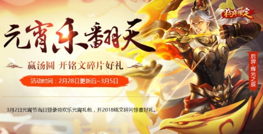 元宵期间的活动分别是当天登录领一个礼包,可以开到最低66个铭文碎片,另外每日游戏可以获得两个礼包,以及还有另外的元宵福袋分享活动,内容与糖果屋一致,可以抽内测皮肤和其余奖励。