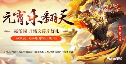 第三,元宵节当天登录王者荣耀,即可能开出666、2018铭文碎片。