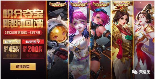 第九,就是这个点券抽奖限时折扣。一次需要45积分,5次是200积分。想要荣耀水晶的可不要错过这次机会哦~