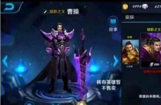 曹操的稀有皮肤暗影之王,或许很多小伙伴都不知道有这款皮肤。这款皮肤之前也只上线过较短的一些时间,然后没过多久就下线了,在网上也有少量体验卡,不过没有永久的。曹操的皮肤展示列表中也没看到这款皮肤!自从王者荣耀S10赛季开启后,曹操的新皮肤烛龙上线,相信大伙都有好好的把握!