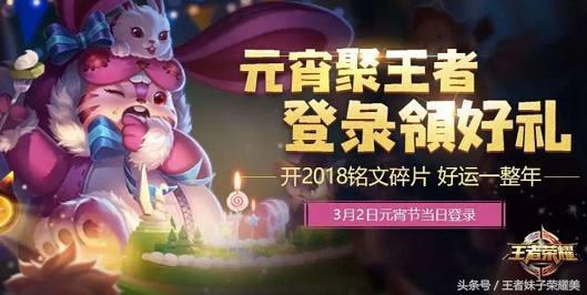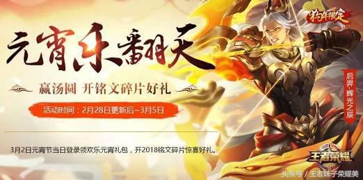 玩家在元宵节当天(3.2日)即可领取欢乐礼包一个,开666、2018铭文好礼。