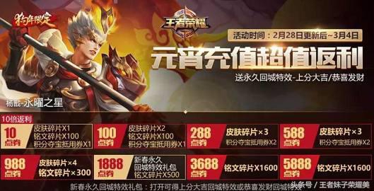王者荣耀:明日开启充值返利活动!永久回城特效充值送!