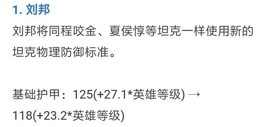 刘邦在高端局基本上是每把比赛都有,大招及时的传送支援,自身坦度又高,还有输出!所以这次体验服对刘邦进行了改动,让他的护甲变成和主流坦克一致。