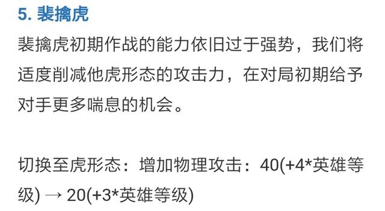 新英雄刚上线就被削了一丢丢,开局虎形态下攻击力太高了,所以略做调整!其实就是削弱了!