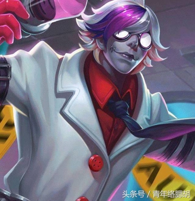 5.扁鹊的化身博士,技能特效的颜色非常的给力,小编也不知道那是什么色,这个皮肤看上去就像电影里的小丑,除了丑还是挺好用的,很多活动都可以免费获得。
