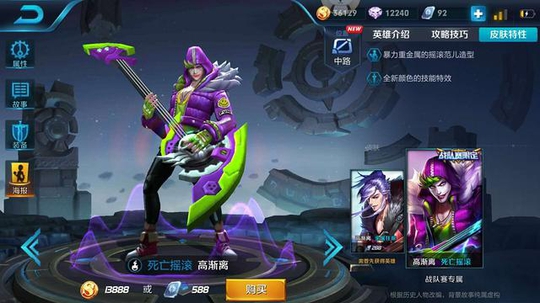天美是不是对摇滚有什么误解,高渐离这个英雄本来就设计的够丑了,再来这一款皮肤,将他的丑又拔高了一个阶段。这紫色的羽绒服是怎么回事,这绿色的手套又是怎么了,好友这个不知道怎么形容的吉他,整个皮肤给人的感觉就是这个设计师没有最基本的审美。