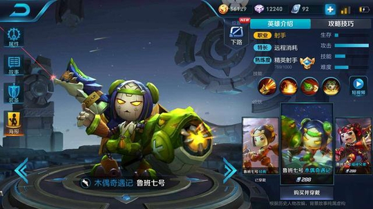 估计天美当初在设计鲁班七号的时候,给他的定位是智商高,但离正常人有点距离的角色,可是,大家对这个英雄的印象,都只是低领,幼稚以及送人头。说他是王者荣耀里最弱的英雄之一,一点也不为过。他的皮肤木偶奇遇记,也是丑出了新高度,就是在原先皮肤的基础上,加了一层淡淡的绿,但是整体气质完全改变了,看起来有点不伦不类。
