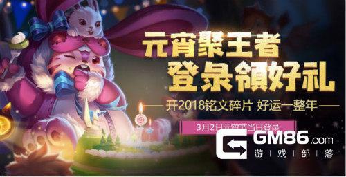 欢喜闹元宵,登录领好礼!3月2日元宵节当日登录领欢乐元宵礼包,开666、2018铭文碎片好礼!