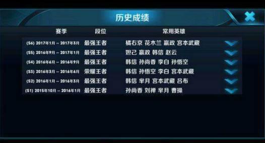 第二张:这张图倒算不上是老图片,但是这张图上的玩家肯定是一个老玩家啊,要说为什么的话,这位玩家更是从s1赛季到s6赛季都是最强王者,不得不说还是很强的!