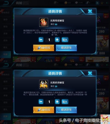1688和1788点券的价格,购买后还能剩下200或者100的点券,再做其他用途。剩下的这些点券,建议大家都购买元宵史诗秘宝,20点券的单价倒是不贵。相比之下,元宵传说秘宝要卖到50点券一个,但这个还是要重点推荐的。这2个宝箱最大的区别,就是抽到皮肤上级别的不同,但是大家也都心知肚明这个获奖概率是真的小啊。剩下的不同之处,就是皮肤碎片、英雄碎片和钻石数量了,50点券的还是要有优势。而且使者也相信,有些小伙伴挺幸运的,能从宝箱里抽到皮肤,应该不是托。