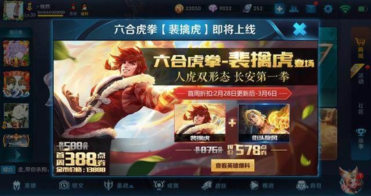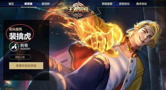 王者荣耀官网已经公布了新英雄裴擒虎将于下周二上线,估计年前买了杨玉环小姐姐的玩家金币已经被掏空了,裴擒虎的皮肤在官网也已经曝光,皮肤名字竟然与韩信街头霸王同名,售价只有288点券哟!