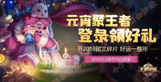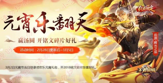 第四个活动是元宵节当天玩家登陆游戏就能领取元宵节礼包,其中有机会开出2018铭文碎片的惊喜好礼(真的好惊喜,像小于铭文已经集齐的丝毫没软用啊~)
