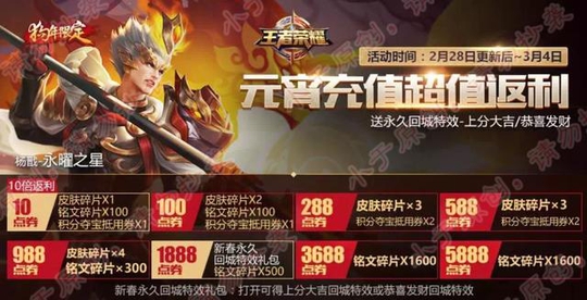 王者荣耀元宵节大活动,秘宝上架,充值直接10倍返利!
