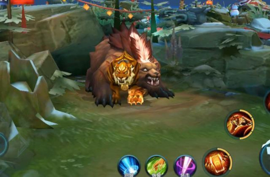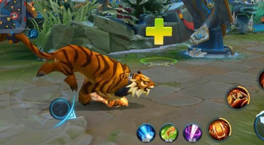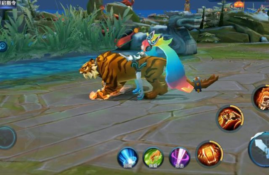 自然变成虎以后还是可以变成其他英雄的坐骑,这里就那安琪拉做演示,安琪拉腿短了点效果没那么完美,要是花木兰就不一样了。