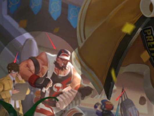 接着我们看左下角的位置,这个位置的信息爆料的更多了,有3个英雄躲在这里分别是诸葛亮,程咬金和鲁班,比较抢眼的是程咬金,看他穿了新衣服预示程咬金也要出新皮肤了么。而那个小鲁班在那里喝水,诸葛亮貌似在看什么数据。