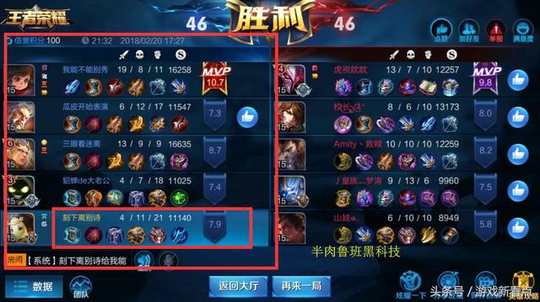 这局比赛肯定打得相当纠结,人头比一模一样。估计敌方后期一波失误,被四个射手直接一波推到水晶,其实很多奇葩的阵容往往能起到很大的作用,各位小伙伴你们在晋级赛,遇到过什么样的奇葩阵容吗?