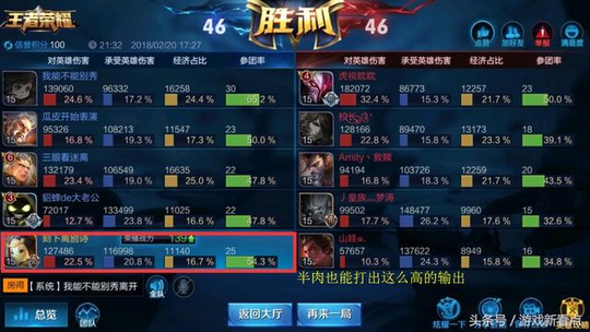 这局晋级赛也是神奇的一场比赛,己方四个射手加上一个辅助,怎么看都不像赢的阵容,敌方的阵容简直无解,李白和宫本武藏还有钟馗和吕布,每个都是射手的克星,然后在21分钟后,己方却笑到了最后,鲁班直接选择出全肉鲁班吸引火力,队友也是异常给力,直接赢得了比赛!