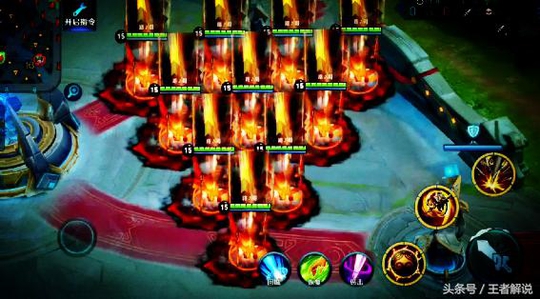 这是谁?在干嘛?很多玩家都会有这样的问题吧。但是如果你仔细看就会发现,这是地狱火,十个地狱火的画面还是很少见的吧。他们在干嘛?在回城。今天王者解说只为各位小伙伴展示一下地狱火的回城特效