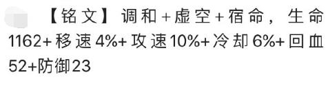 现在的坦克不仅需要防御,还要一些输出。因此在铭文方面方面推荐调和虚空加宿命,保证了移动速度攻击速度,同时增加了生命和回血,可谓兼顾很多。