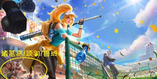 这样一张图片你能找到几个人呢?是不是乍一看就只有拿着棒球棍的花木兰(其实最开始小编连花木兰都没有认出来)这样一身运动装加上一根棒球棍,还猜不出来花木兰要干嘛的话估计小编就要被解雇了!根据小编多年经验,往往官宣推出这样图的时候就会出新皮肤了!当然中间的花木兰现在大家也都知道了,小编就带大家找一下这张图剩下的“秘密”。