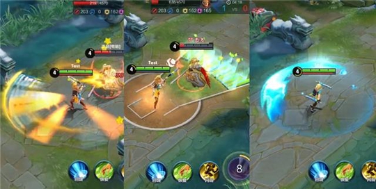 大招的两种特效:重剑下是金黄色的效果,轻剑下是蓝色的效果。