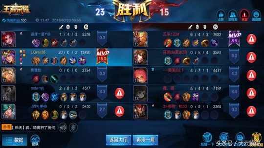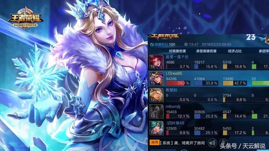 从上图可以看出,这一局战争女神绝对是逆天了,打的双方三人逃跑,只有对面一个猴子战绩是稍微正的!二十三个人头有22个跟她有关!最后战绩图看到整场输出有74.3%都是属于雅典娜,参团率95%,真正实现了一打九的奇迹!