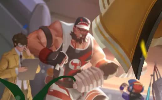 花木兰后面还有一个带着棒球帽举铁的程咬金,没错你的大胡子已经暴露你了。然后旁边是诸葛亮,刚开始啊梦还觉得有点奇怪,忽然想到之前诸葛亮原画里面的彩蛋,诸葛亮做老师,底下是鲁班、小乔、程咬金这几个学生,所有诸葛亮应该就是他们的老师来视察他们的训练的?旁边还有电玩小子小鲁班在喝水,真的是小的我差点看不到。
