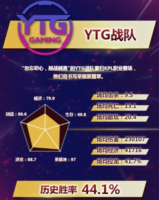 YTG战队是掉级后又从次级联赛给杀回来的。论实力的话,他们可能是这个赛区里面最弱的,但是,他们的精神力量不容小觑。在经历了这种大起大落之后,也许会焕发极强的战力也说不一定,