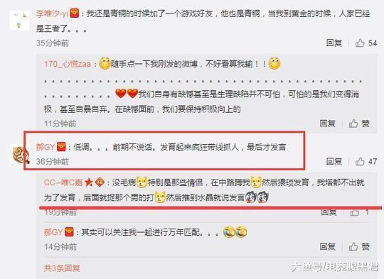 “别是那些情侣,在中路蹲我然后猥琐发育,我塔都不出就为了发育,后面就捉那个男的打然后推到水晶就说发言”