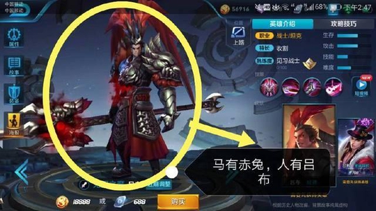 吕布 吕布在峡谷里也是一个很厉害的存在,吕布能打能防,是一个很不错的战士。一技能不仅能对敌方英雄造成真实伤害,同时也可以回复自己的生命值;二技能对敌方英雄减速,同时自己还有护盾保护,而且附带回血;三技能的控制范围相当大,击飞大招范围内的英雄,大招一定要注意准确,一旦命中,在团战中作用很大。吕布一般是先用二技能对敌方英雄造成减速,然后利用一技能的附魔对敌方英雄造成真实伤害,简直完美。