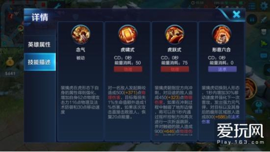 虎形态的裴擒虎,则属于近战形态,更类似于战士。被动念气大幅度增强的裴擒虎的基础属性,攻击力、双防、移速都大幅度提高。一技能虎啸式是虎形态的主要输出技能,且敌方生命值越低该技能伤害越高,用此技能直接击杀敌人还会恢复20点能量。二技能虎跃式是裴擒虎的主要位移技能,冲刺途中还可对路径上的敌人造成伤害,最重要的是如果冲刺过程中碰触了地形边缘,还可通过摇杆进行一次折返跳跃,具体的可以类比成不知火舞丢扇子之后的位移。大招形意六合是切换成人形态,提高30%移速持续一秒,并且强化下一次普攻。