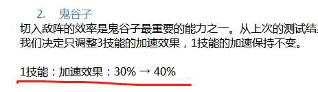 再来说鬼谷子。之前体验服中,鬼谷子同时削弱了1技能和大招的加速效果,本来鬼谷子这名英雄强就强在节奏能力上,削弱加速,无疑会让鬼谷子的辅助能力大打折扣。此次更新,1技能加速回滚至上次调整,也就是说只削弱大招。这样依赖,鬼谷子的游走能力影响较小,但和打野一起carry的场景恐怕要少见了。
