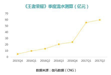 正是因为《王者荣耀》的火爆,其带来的收益也领跑了2017年度全球手游收入。据了解,2017第二季度,腾讯手游营收合计达148亿元,而第三季度,这一数字更是飙到了182亿元,相比上一年同比增长达84%。