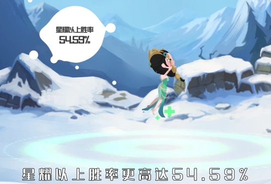 另外官方还给出了她的高端局胜率,杨玉环在星耀以上的胜率是54.59%。这个就能算是比较强的英雄了。同时,官方也说了在高端局中,她更多的是作为辅助英雄来使用。