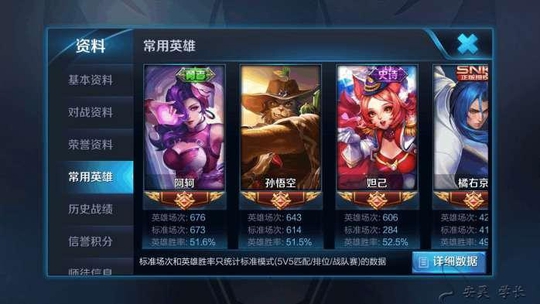 我们再来看看他的常用英雄,可以看出他是一位普通玩家,英雄场次与胜率都在50%左右,在游戏中据该玩家介绍,自己是近期才获得的武则天,进入游戏之前武则天的熟练度也不是很高,由此可见确实是一位非常幸运的玩家。