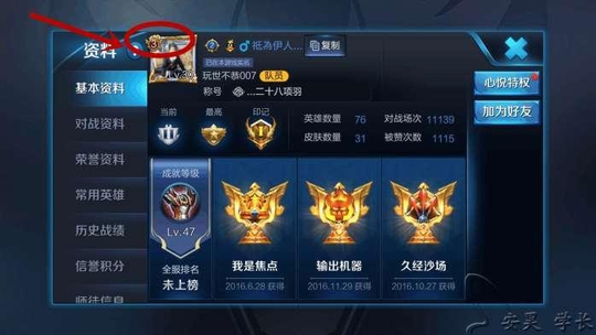 以下是该玩家的资料,从中我们可以看到,这是一位老玩家了,对战场次高达一万,成就等级也算是很高了,这位玩家拥有31款皮肤,确实可以认为他并不是掉至贵族3的,而是本来就是贵族3,因为目前王者荣耀之中的免费皮肤也是很多,加起来他拥有31款皮肤也是差不多的。