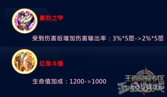 这次更新削弱了两件装备,分别是红莲斗篷和暴烈之甲,其中红莲是大多数坦克的标配装,这次下调200点生命值也间接削弱了坦克型英雄前期的抗伤能力,而暴烈之甲的伤害输出率被削减1%后同样影响了一批英雄,比如关羽!