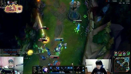 扇子妈被打成残血,金克斯交加血,这时候金克斯吃到远处小兵经验升级,学了一手夹子。