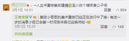 关于嬴政这个英雄,皮肤和模型确实不太好。而官方现在已经正式宣布了嬴政的美术优化。这个应该是包括英雄本身的模型和皮肤的模型的。毕竟作为一个rmb英雄,不能太丑了啊。让我们看一下这个千古一帝该有什么样的风采吧!小编也会及时给大家带来各种最新消息。