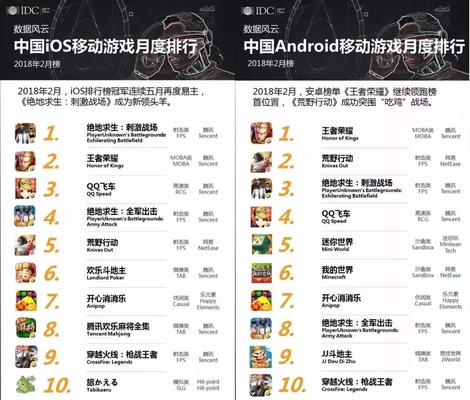 近日,专业数据调研机构IDC公布了2018年2月中国手机游戏排行榜,或许是受到春节长假的影响,曾在1月略显颓势的《王者荣耀》借势回归,重新登上榜首。