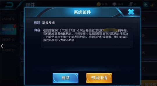 但是就是这样的一个战绩,这样的一个评分,最后玩家举报这个韩信的时候,居然还是没有举报成功,反被贵族举报了,可见天美的举报系统是真“公平”。