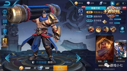 5、苏烈自带复活甲,多重控制,你可以当他是项羽的加强版,半肉半输出打得你怀疑人生。