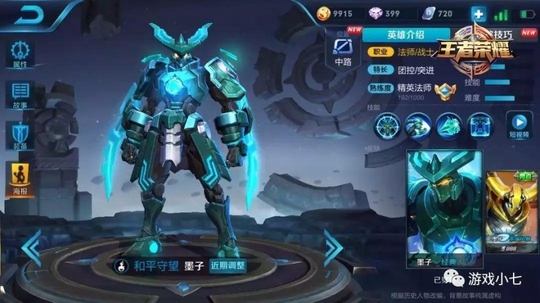 4、墨子这个英雄既能当法师,又可以当坦克,真的很肉,全法装墨子,吃他一炮脆皮就残了,肉起来一点不比张飞逊色(有过之而无不及),而且墨子这个英雄本身控制技能就很多,团战控制的时候非常给力。