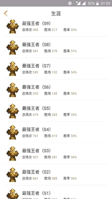 原来这位老玩家真的是每个赛季都保持着最强王者的段位,技术肯定是到了一定境界了。但是细看他的胜率并不是很高,怎么就这么轻松上了王者呢?而且在S6,S7赛季只打了两百多场次。这样秀自己的战绩出来让普通玩家心里怎么受得了。
