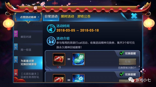 为英雄点赞,兑换回城特效活动,今晚结束,五面旗帜下的各组点赞第一名英雄,天美会给其在后期制作独一无二的新皮肤(兑换永久精神回城徽章持续到3月18日结束!)。